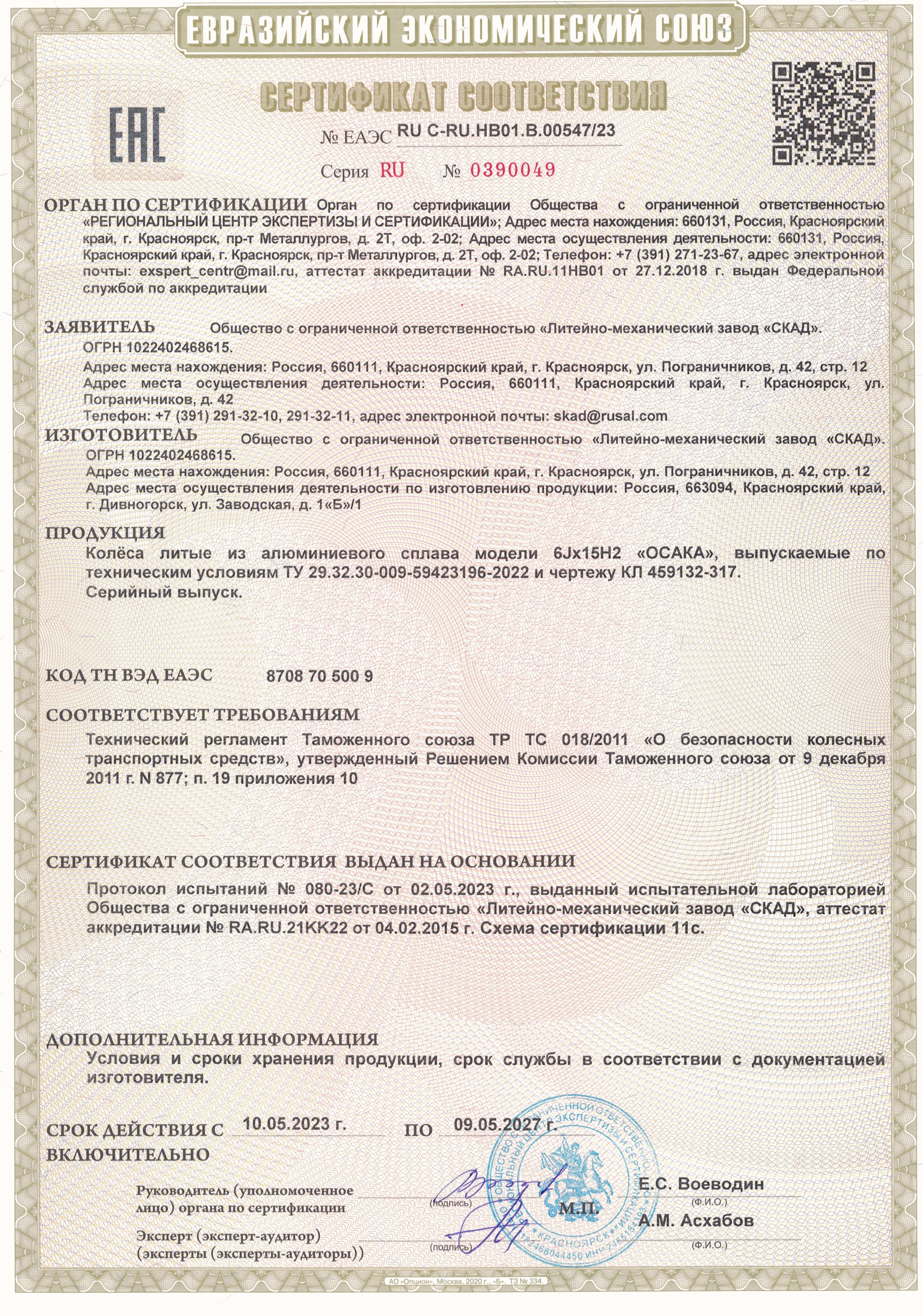Приобретайте диски SKAD ОСАКА 6.000xR15 4x100 DIA54.1 ET48 напрямую от производителя из Сибири. Все представленные в ассортименте диски сертифицированы.